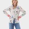 - Contrasting print details on collar and cuffs