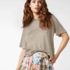 Modern T-shirt made from a soft jersey-linen blend in a boxy fit with dropped shoulders and a round neckline.