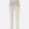 The Mid-Rise Cropped Pants feature straight legs with turn-up details and a lace insert, crafted from plain linen. Combining comfort and elegance, these pants offer a stylish option for various occasions.