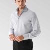 The wrinkle free business shirt made of Cotton and Lyocell Natte with a houndstooth pattern in Comfort Fit combines style and functionality for a well-groomed business appearance. The shirt is made from a Natte structure with a mini houndstooth pattern and is special thanks to the addition of Lyocell soft. Thanks to the “”Perfect Look”” workmanship, the shirt hardly creases and can be worn without much ironing, and the product is also smoothed by body heat. The shark collar, the classic cuff with the characteristic van Laack curve and the specially sewn van Laack corners give the shirt an elegant touch. It has a smooth button placket and a practical chest pocket. The high-quality workmanship of the shirt includes inner seams, side seams, hand-knotted seams and mother-of-pearl buttons, making it ideal for business occasions and as a travel shirt.