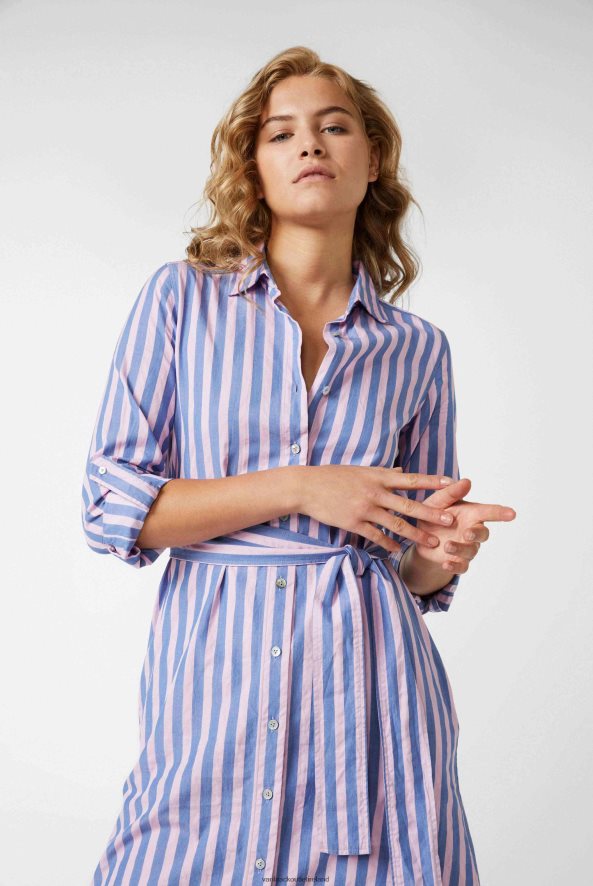 The classic shirt dress discovers striped chic. Already an eye-catcher on its own, it becomes a highlight with the wide sash. A strikingly beautiful summer dress – casually elegant and with the airy, light wearing comfort of pure cotton. The dress has a casual cut with a shirt collar, side seam pockets and 3/4 sleeves with button cuffs. The full-length button placket lets you decide how much cleavage and leg you want to show. Enjoy fashion standards and maximum wearing comfort.