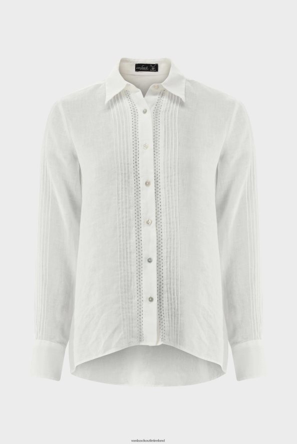 An elegant fitted shirt with a slightly flared hem, long sleeves, front pleats, and lace inserts, crafted from simple cotton batiste. Perfect for casual occasions and chic events.